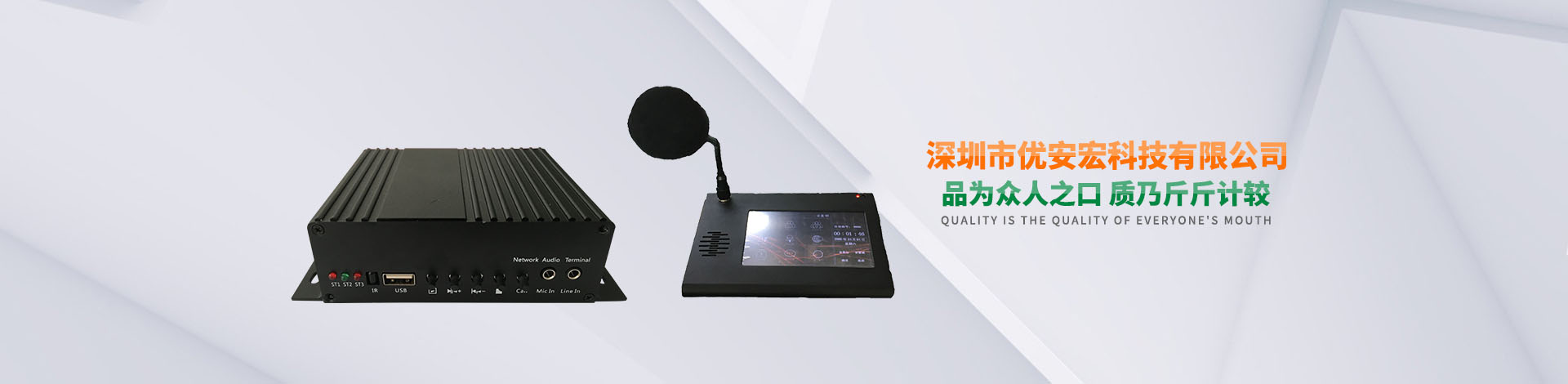 深圳市優(yōu)安宏科技有限公司是專(zhuān)業(yè)從事網(wǎng)絡(luò)音頻產(chǎn)品研發(fā)設(shè)計(jì)、設(shè)備制造和系統(tǒng)集成的高新技術(shù)企業(yè),總部位于深圳,公司擁有專(zhuān)業(yè)的研發(fā)、生產(chǎn)、銷(xiāo)售和市場(chǎng)一體化精英團(tuán)隊(duì)。