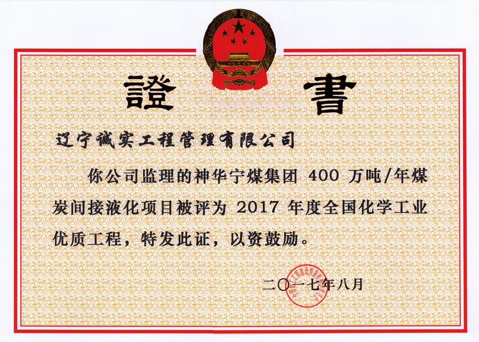 2017年全國化學(xué)工業(yè)優(yōu)質(zhì)工程(神華寧煤集團(tuán)400萬噸/年煤炭間接液化項(xiàng)目)